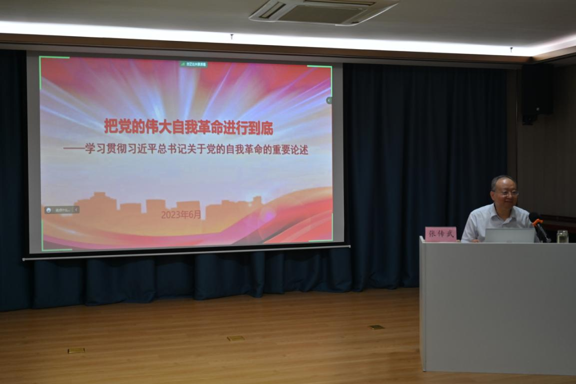 6月1日,省医工设计院举办主题教育读书班(第二专题)专家辅导报告会,邀请省委党校(山东行政学院)二级巡视员、机关纪委书记张传武作辅导报告。省医工设计院党总支书记、董事长兼总经理黄晓东参加报告会。