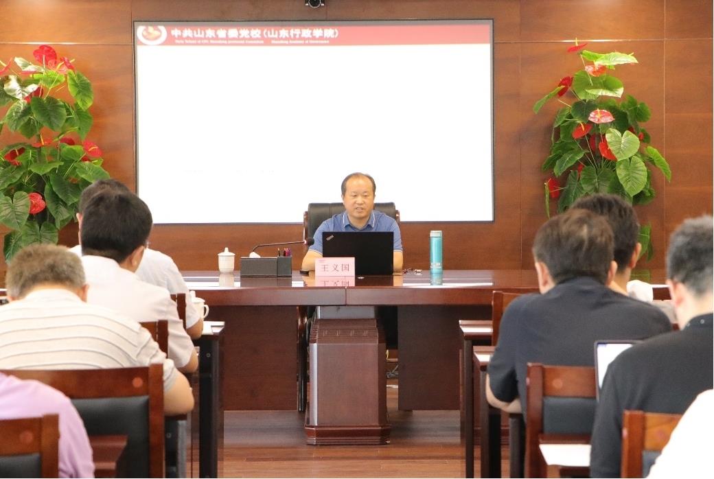 根据学习贯彻习近平新时代中国特色社会主义思想主题教育工作安排,6月19日,世界杯中国官网举办第十九期“鲁商文化讲堂”暨主题教育读书班专题辅导,省委党校政治和法律教研部副主任、教授王义国受邀作专题授课。
