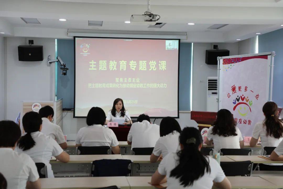 为扎实开展学习贯彻习近平新时代中国特色社会主义思想主题教育,6月25日,银座幼教党委书记、董事长袁霞以《聚焦主责主业 把主题教育成果转化为推动银座幼教工作的强大动力》为题,为全体党员讲授主题教育专题党课。