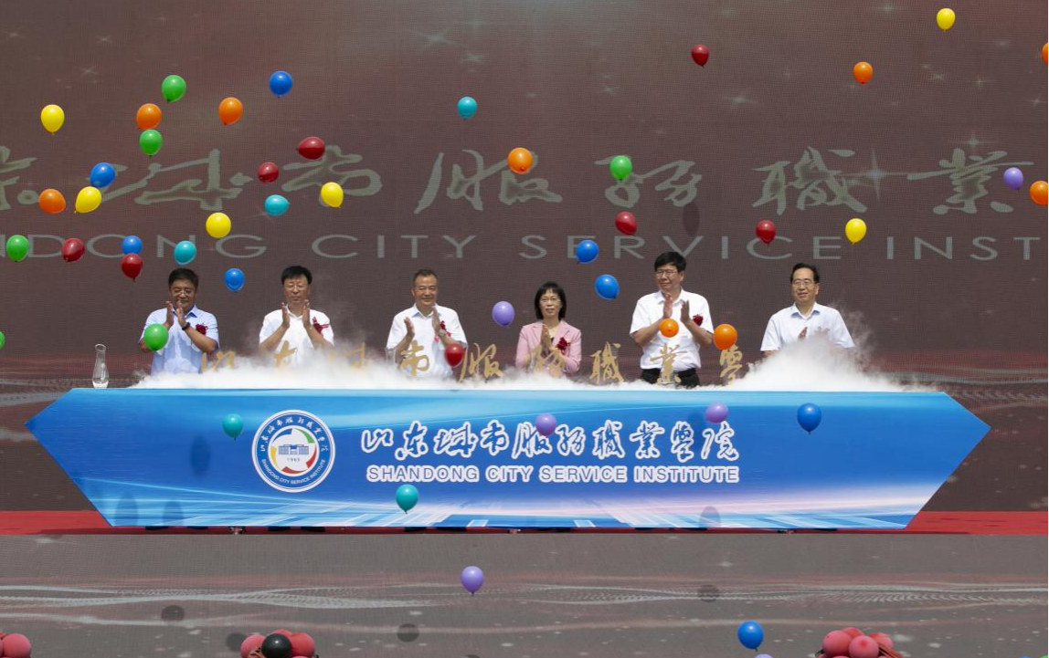 6月27日,山东城市服务职业学院举行揭牌仪式。省教育厅二级巡视员赵立辉出席揭牌仪式并宣读《山东省人民政府关于同意设立山东城市服务职业学院的批复》。世界杯中国官网党委常委、董事、组织人力资源部部长李林,烟台市政协副主席、工商联主席李京波,市委教育工委常务副书记、市教育局党组书记、局长郝慎强出席揭牌仪式。