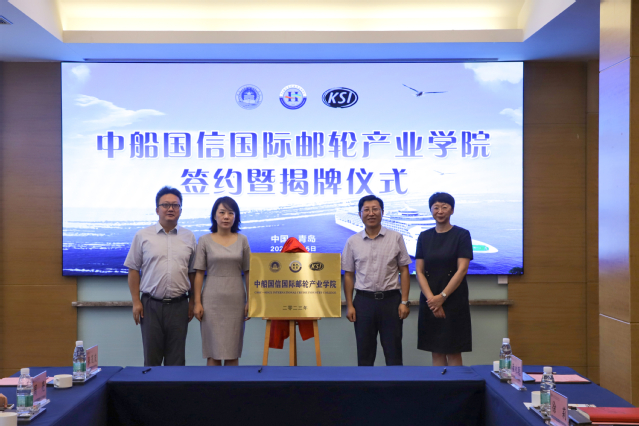 近日,青岛酒店学院与中船舰客教育科技(北京)有限公司、山东国信国际经济技术合作有限公司共同举行“中船国信国际邮轮产业学院”成立仪式。