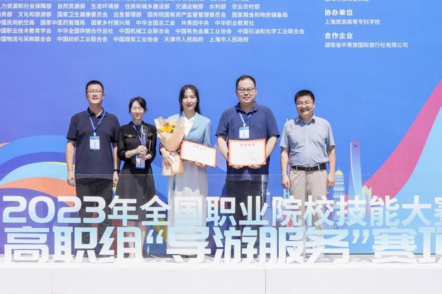 在“酒店服务”赛项中,徐梦如、秦佳辉、王佳露3名同学组成的代表队以总分第一名的优异成绩获得一等奖,许文素、韩宝真荣获优秀指导教师奖。在“导游服务”赛项中,学校学生李金珊以总分第二名的优异成绩获得一等奖,杨栋荣获优秀指导教师奖。