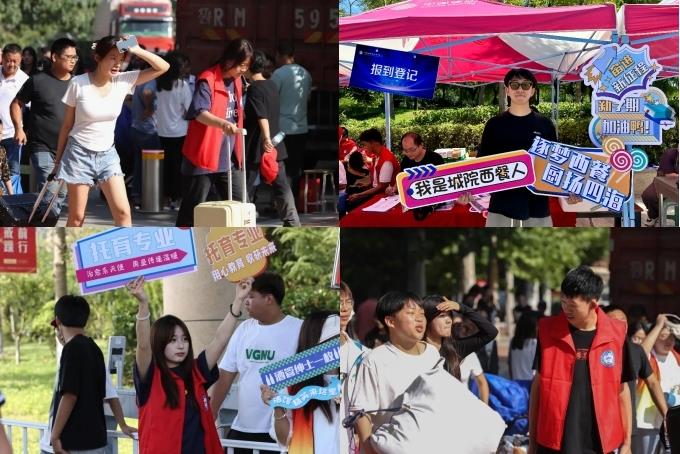 百余名志愿者遍布接站点和校园,通过信息咨询、道路指引、物资领取、行李搬运,为新生入学保驾护航。学校还在报到现场设置了临时饮水点和休息区,为新生和家长送去清凉。同时,校园内布置了多处打卡点,其中“热烈欢迎新同学”巨型展板由全体新生名字组成,极具创意的设计引得学生和家长纷纷驻足寻找自己的名字并拍照留念。