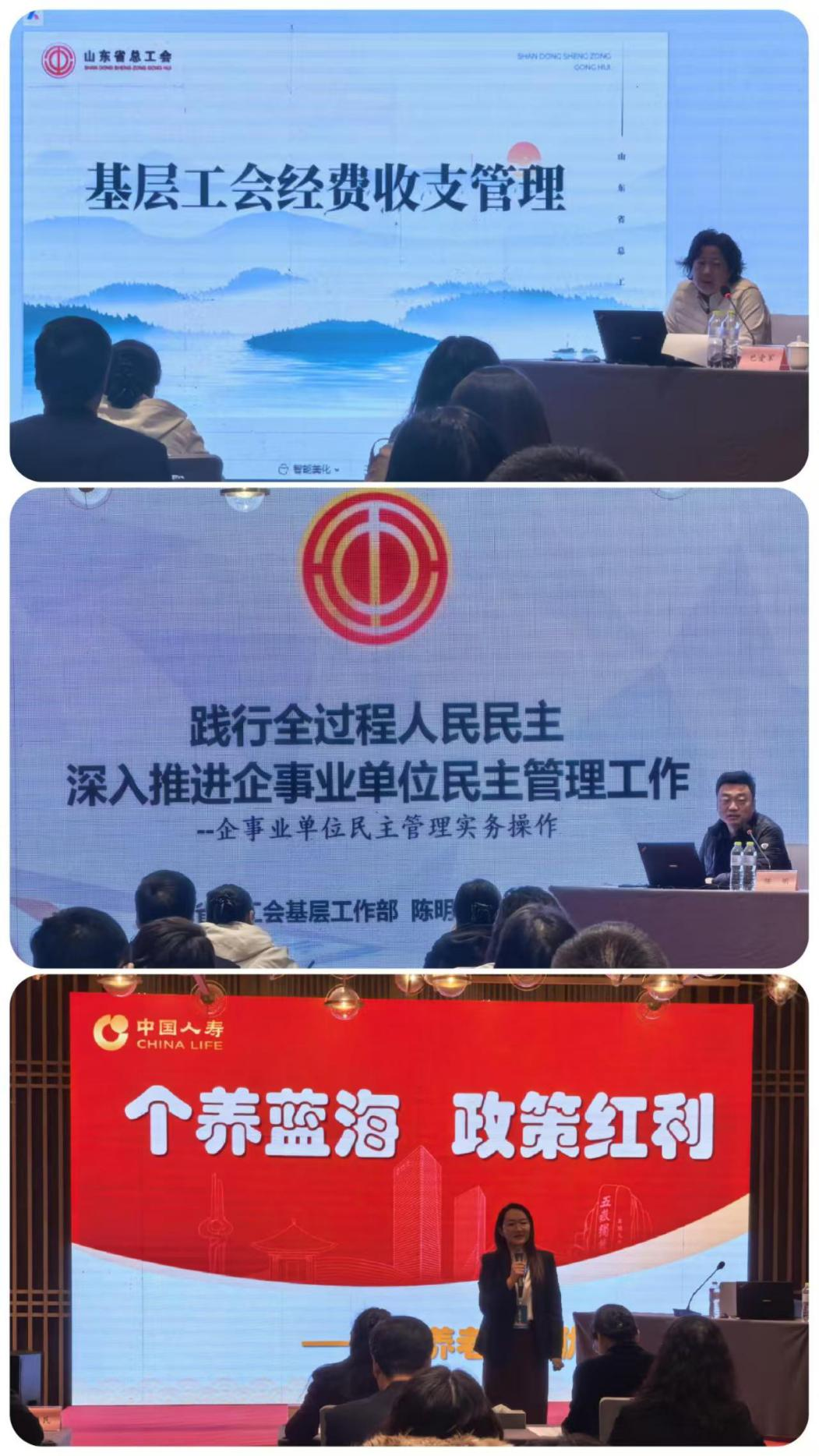 培训班邀请省总工会经费审查委员会办公室主任、一级调研员巴爱军讲解了工会财务和经审工作实务,省总工会基层工作部负责人陈明讲解了工会基层工作实务,并邀请专家解读了个人养老金制度等有关政策,通过案例剖析、互动讨论等方式,进一步提升了工会干部的理论水平和业务能力。培训还组织了红色教育基地现场教学,开展了“我为群众办实事”、推进美德山东和信用山东“进企业”主题研讨,引导各级工会践行社会主义核心价值观,提升服务职工质效。银座集团、福瑞达、山东城发、鲁商科技、鲁商服务、山东商院、齐鲁医药、银座幼教等8家单位工会围绕劳模工匠选树、民主管理、全员创新、服务职工、党建引领、就业促进、素质提升等方面作了交流发言。