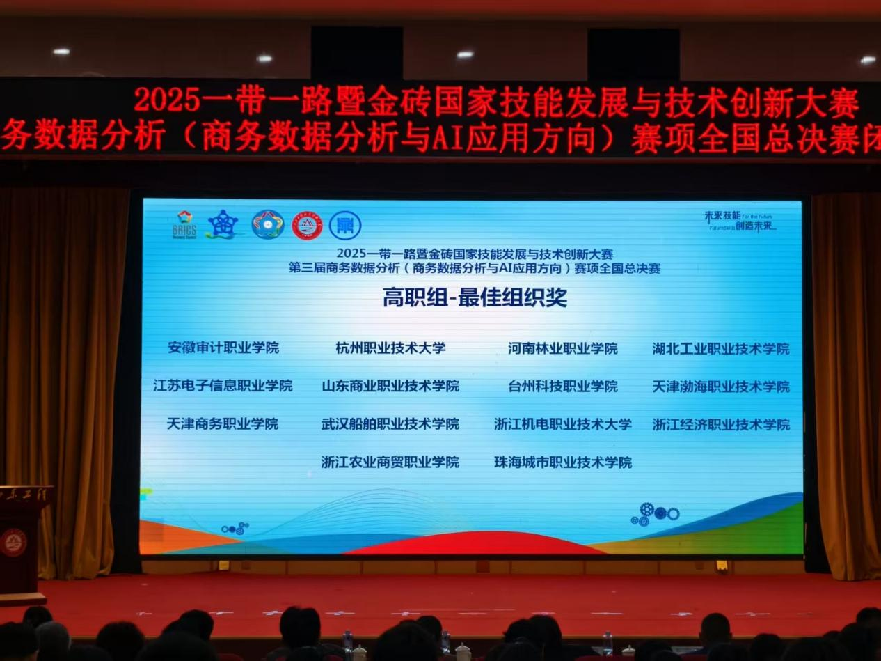近日,第九届“一带一路”暨金砖国家技能发展与技术创新大赛——第三届商务数据分析与AI应用赛项全国总决赛圆满落幕。本次大赛吸引了来自全国195所本科、高职及中职院校的199支学生团队同台竞技。经过激烈角逐,山东商职学院代表队荣获高职组全国一等奖,学校荣获“最佳组织奖”。