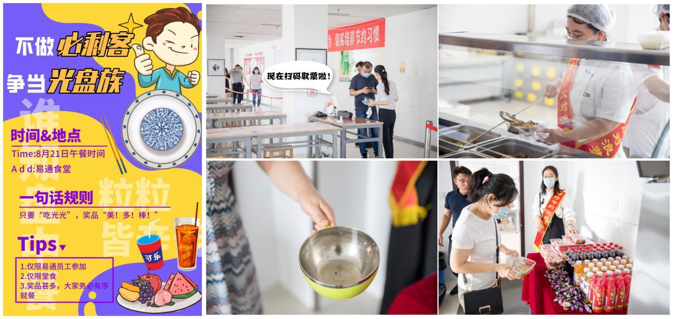 为深入贯彻落实习近平总书记关于“坚决制止餐饮浪费行为,切实培养节约习惯”的重要指示精神,大力倡导勤俭节约、文明健康的生活习惯,易通于8月21日组织开展了一场别开生面的“不做‘必剩客’ 争当‘光盘族’”文明餐桌行动。