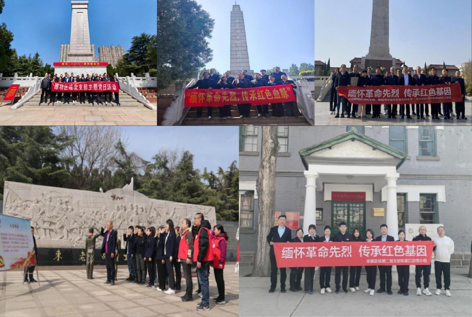 示范引领树标杆,红色教育见实效。济南万虹店党支部前往烈士山革命陵园举行清明祭扫,重温入党誓词,开展“红色地标里的党史课”。聊城区域联合聊城市中医医院临床综合第一党支部走进聊城市革命烈士陵园,活动中认真学习了中央八项规定精神并结合工作开展交流、提升作风。银座配送中心党支部联合济南中铁逸都党支部共50余人前往济南市英雄山革命烈士陵园举行祭奠仪式,大家认真擦拭墓碑,表达哀思,随后开展登山拉练和党课学习活动。京冀区域第二党支部张家口店党小组赴晋察冀军区司令部纪念馆参观学习,通过珍贵文物和史料,深切感悟革命先辈的坚定信念和奉献精神。济南广场店、珠宝公司、日照区域、济宁区域以及潍坊区域等前往烈士陵园,敬献花篮、默哀致敬、参观纪念馆,接受爱国主义和革命传统教育。