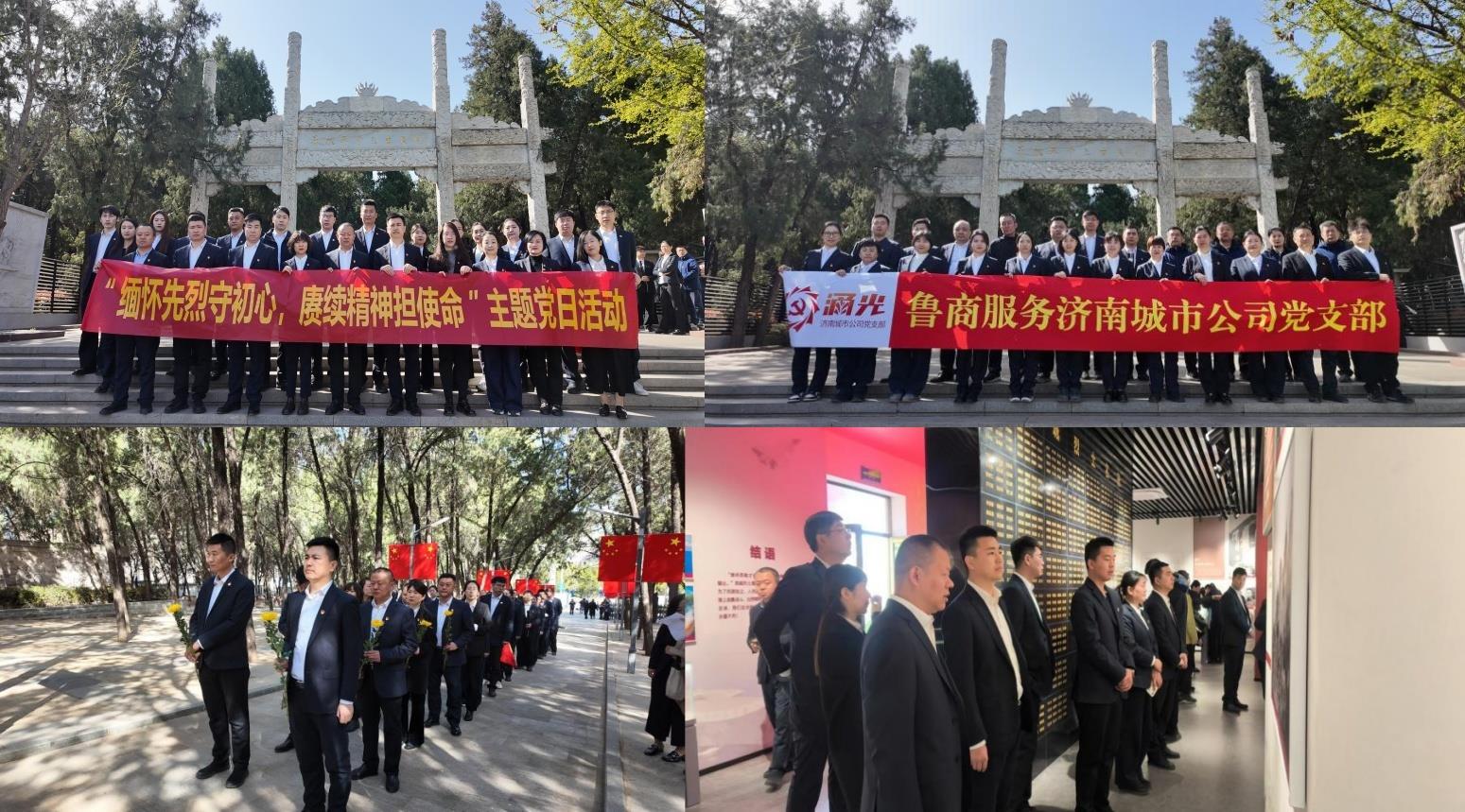 4月2日,鲁商服务第一、二、三党支部及济南城市公司党支部,组织党员与青年团员前往济南市历城革命烈士陵园开展祭扫活动。在烈士纪念碑前,全体人员列队肃立默哀、有序献花,深切缅怀英烈,党员面向党旗重温入党誓词。紧接着,众人走进纪念馆,在解说员的带领下,深入了解那段艰苦卓绝的革命岁月。