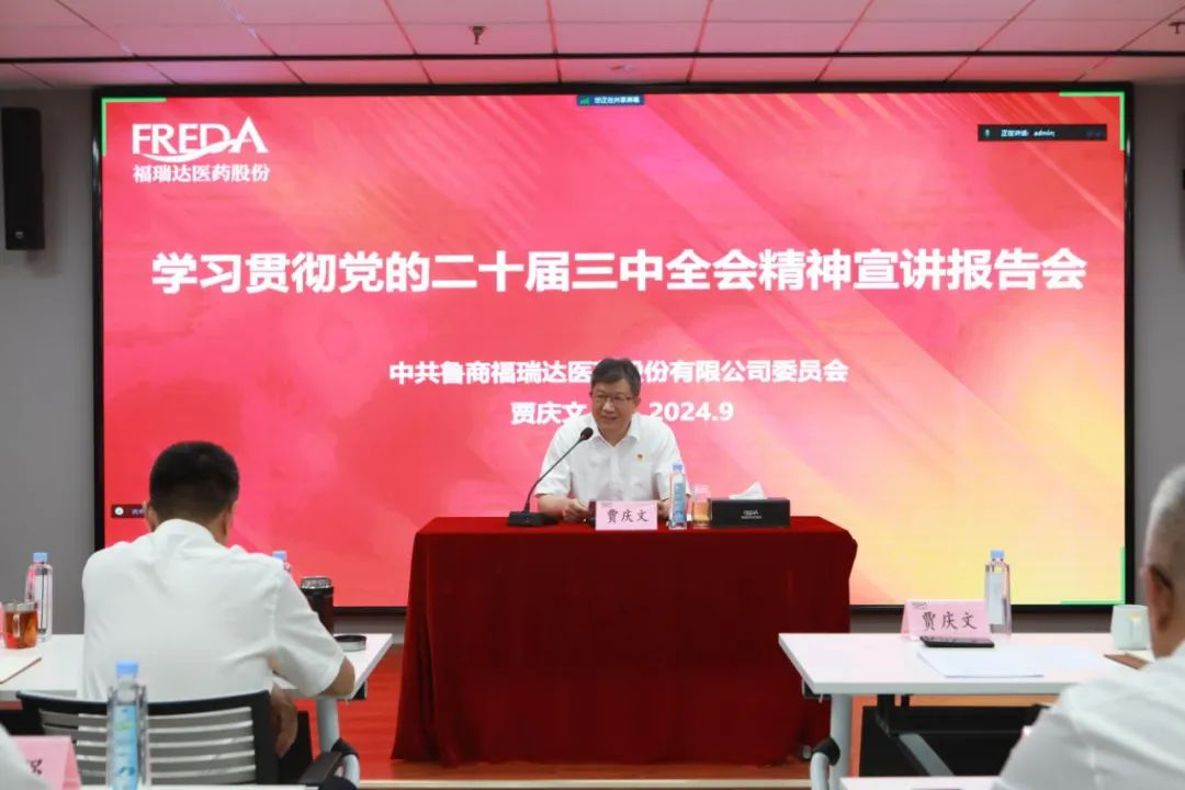 近日,世界杯中国官网党委宣讲团成员,党委常委、董事。副总经理、工会主席,福瑞达党委书记、董事长贾庆文到福瑞达宣讲党的二十届三中全会精神。